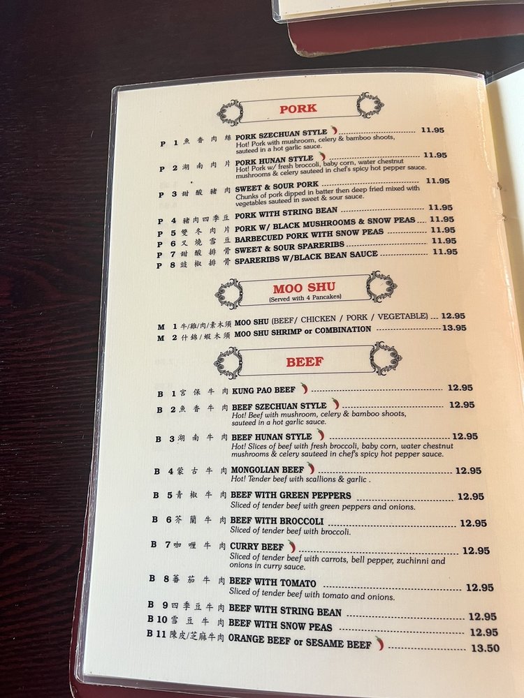Slices of beef with fresh broccoli, baby corn, water chestnut mushroom and celery sauteed in chef's spicy hot pepper sauce. Hot and spicy.