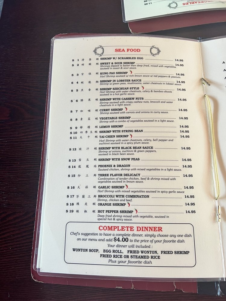 Shrimp, scallop, imitation crab meat with broccoli, straw mushroom, celery and bell pepper in kung pao sauce. Hot and spicy.